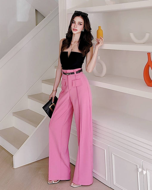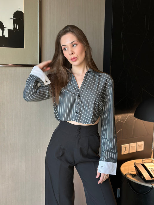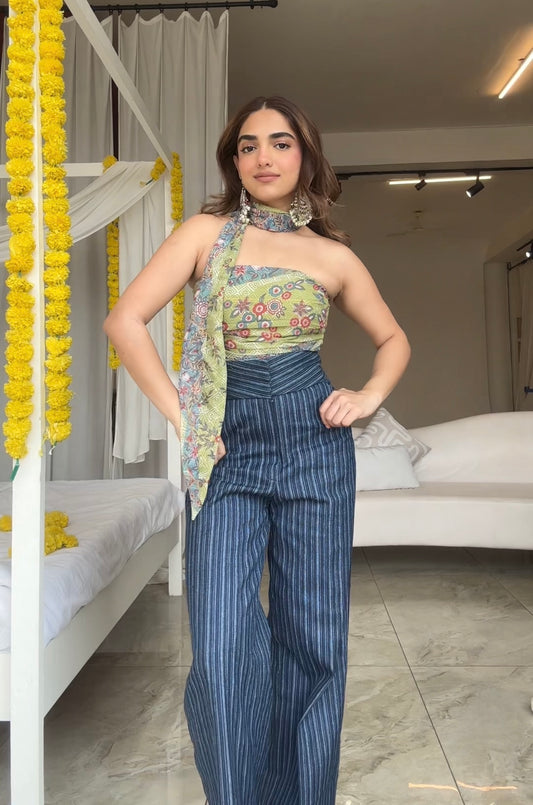 Combo Deal: Striped Shirt With High Waist Corset Pants