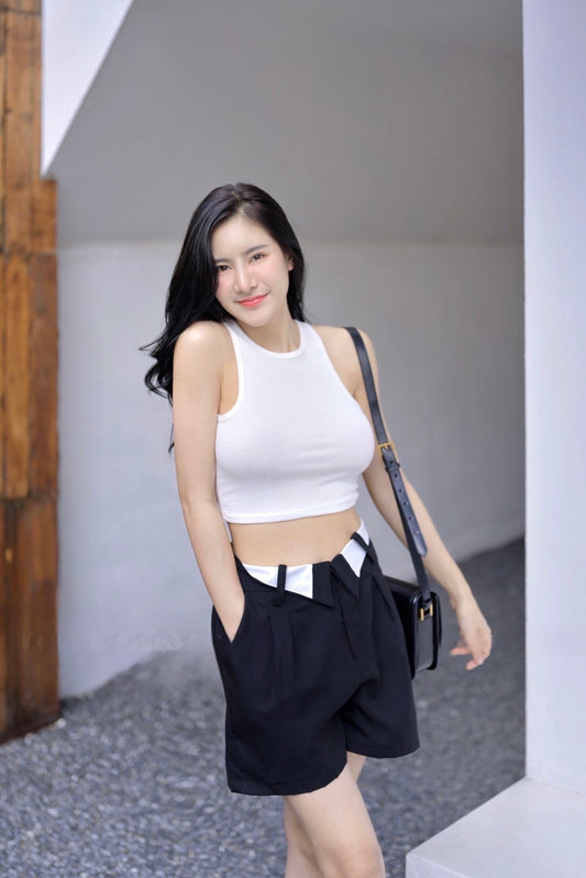 Oh Summer Sleeveless Tee With Low Waist Denim Hot Pants