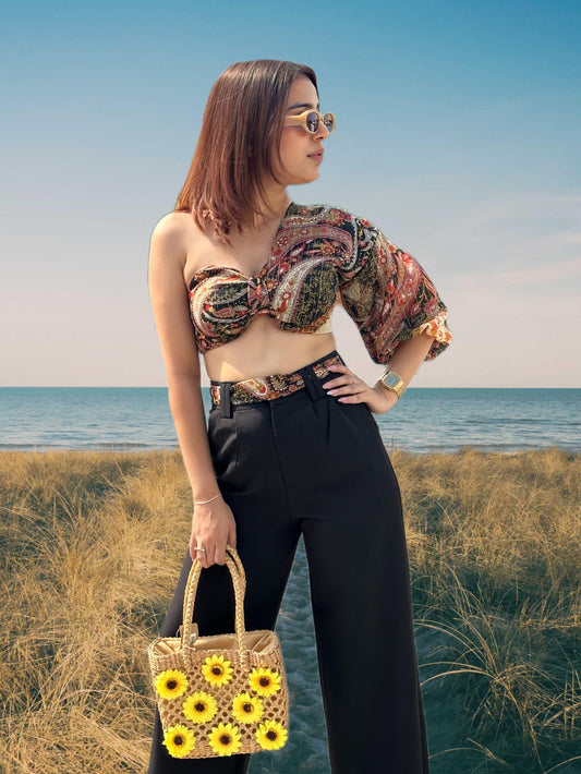 Summer Printed Crop Shirt With Pants