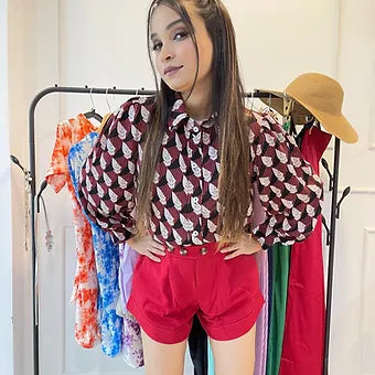 Satin Shirt With Silver Metallic Skirt
