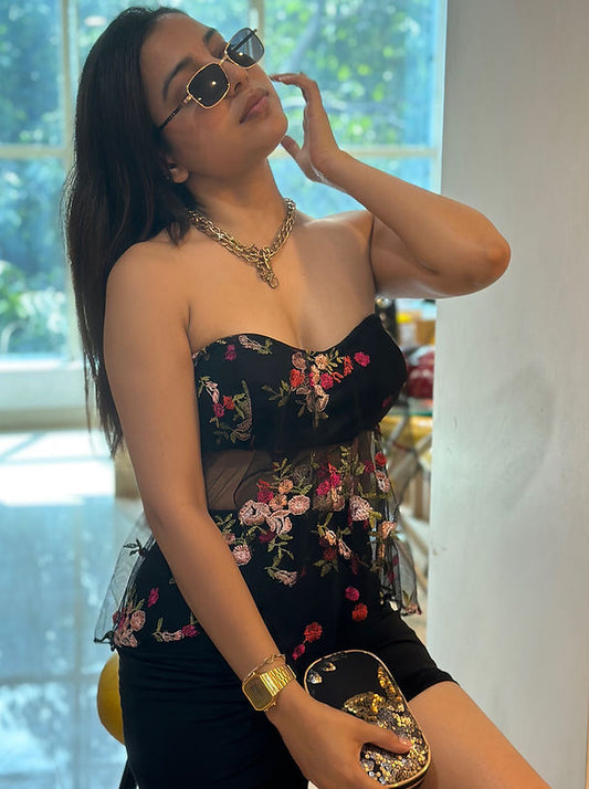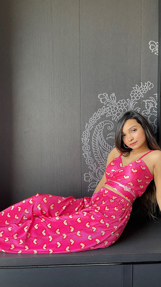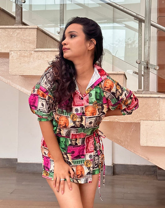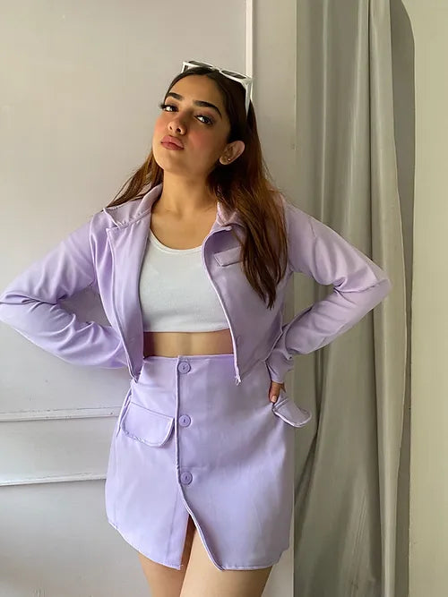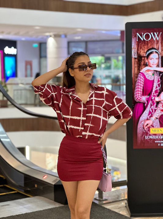 Bling Satin Shirt With Metallic Body Fit Mini Skirt