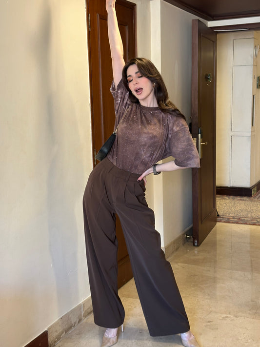 Bohemian Halter Neck Top With Neutral Stretch Pants