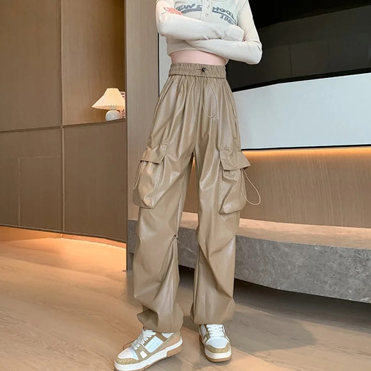 Faux Leather Cargo Pants