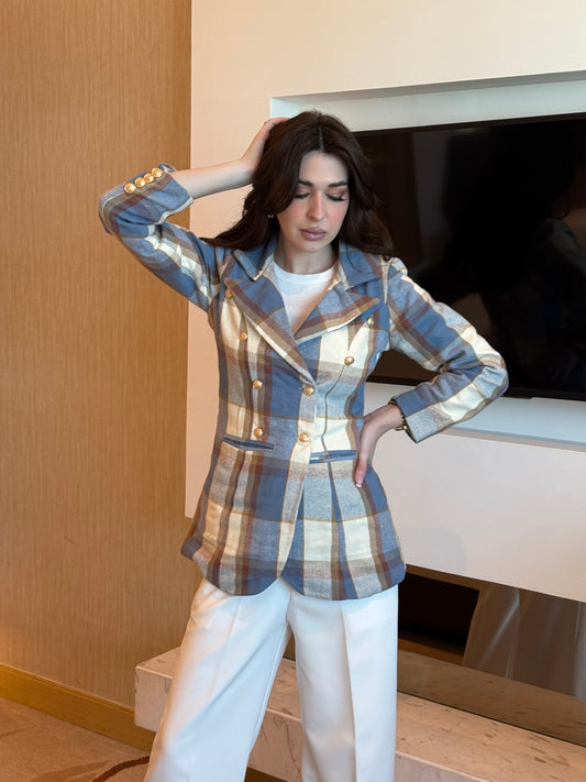 Sold outPlaid Long Double Breasted Blazer