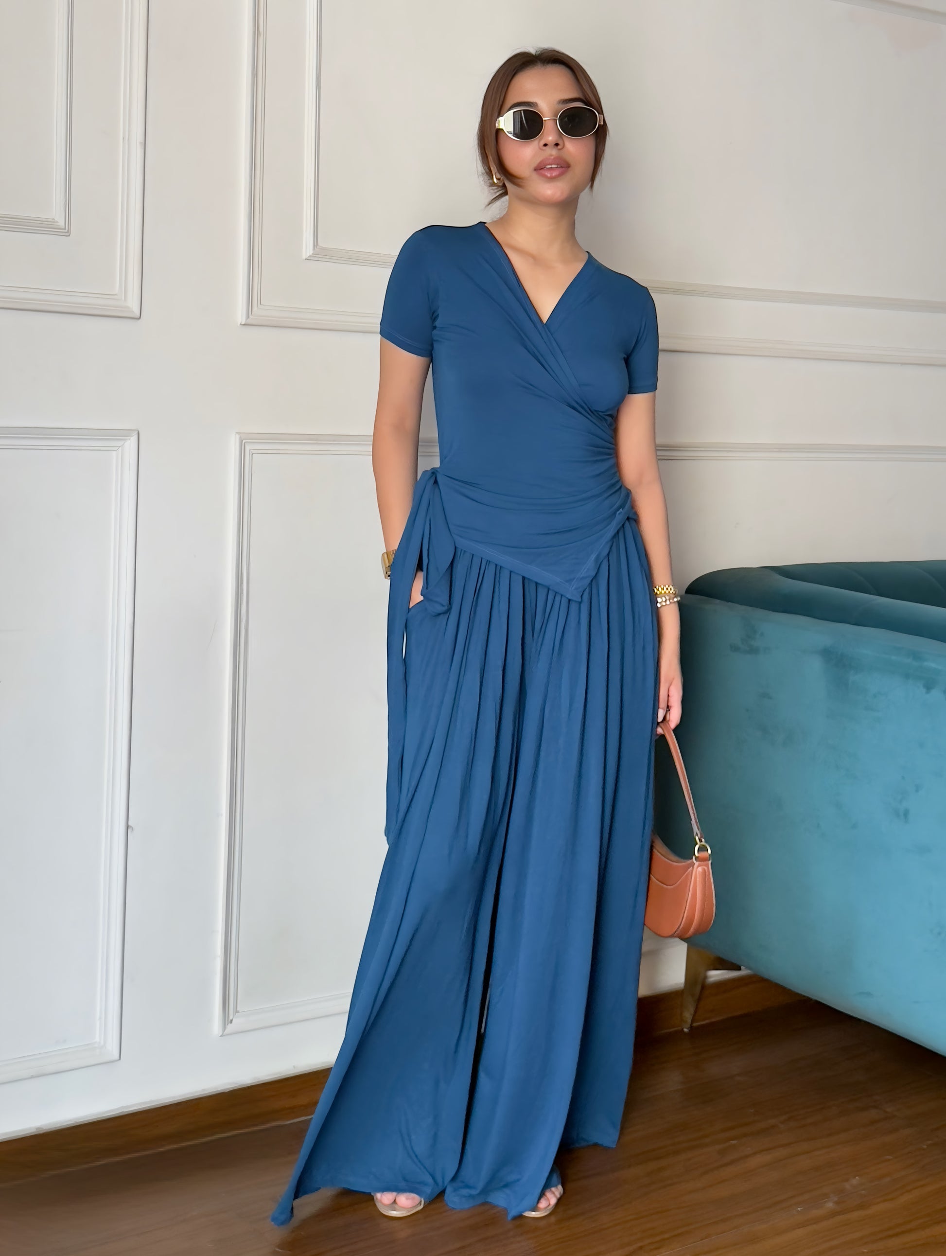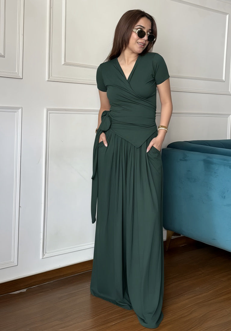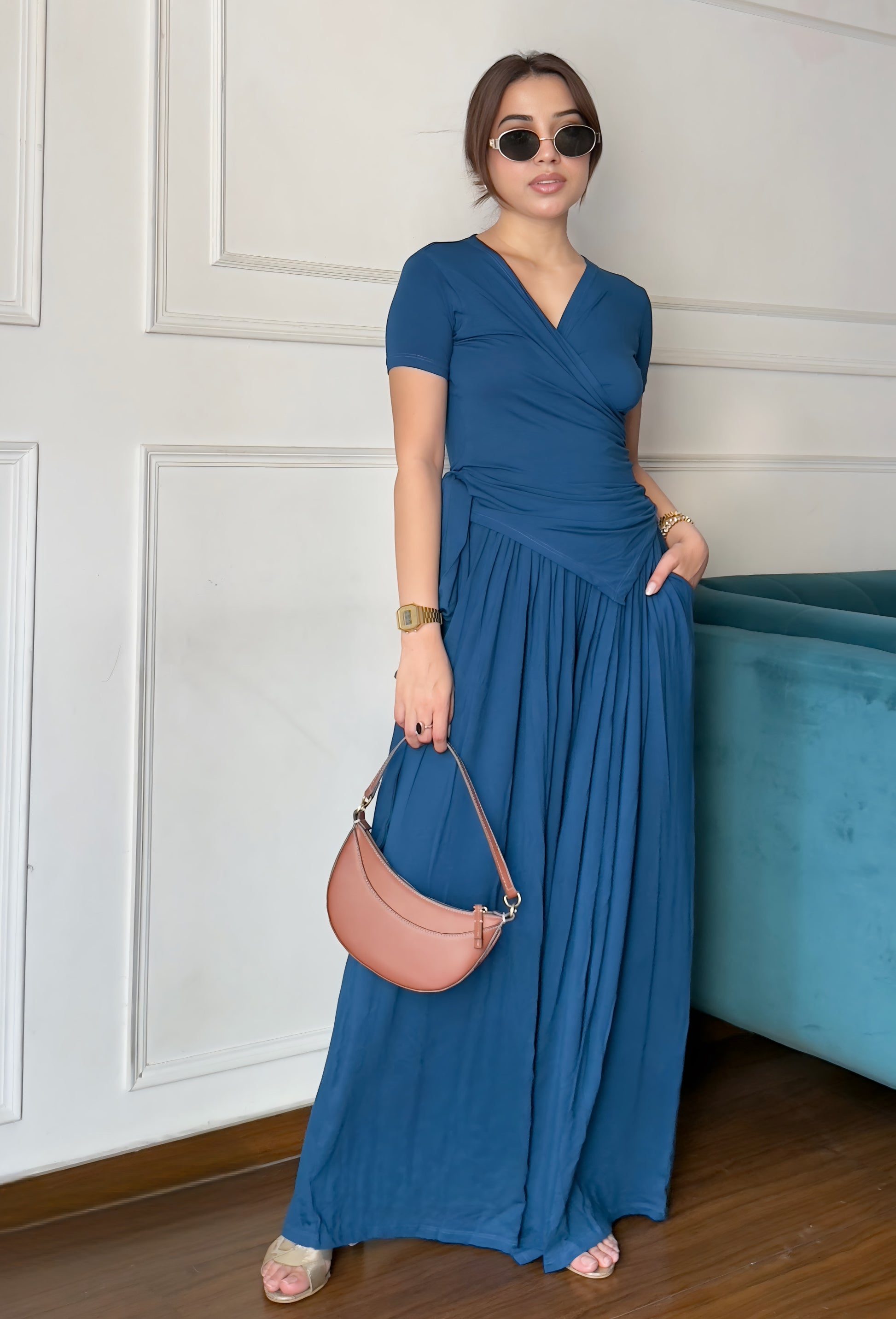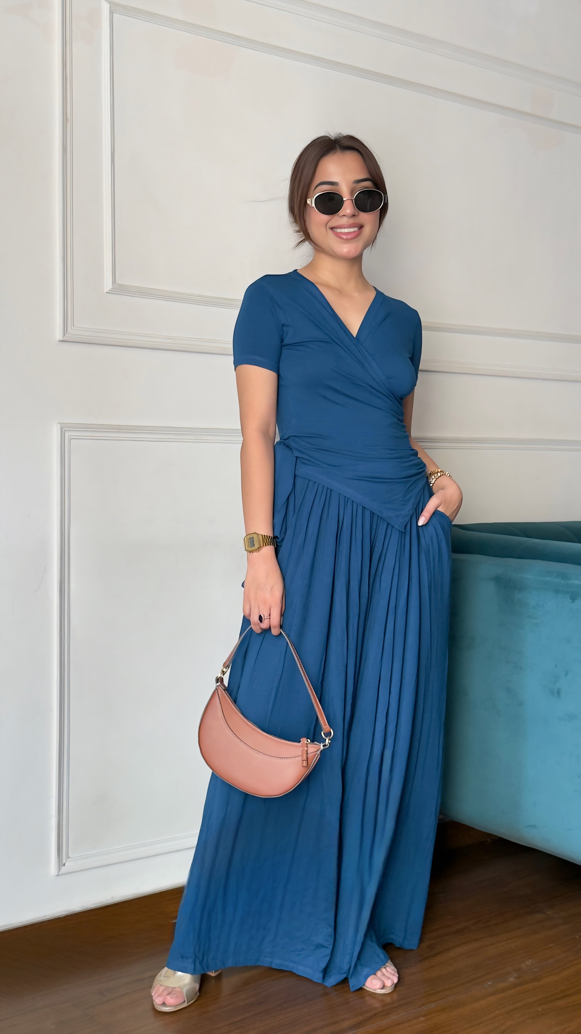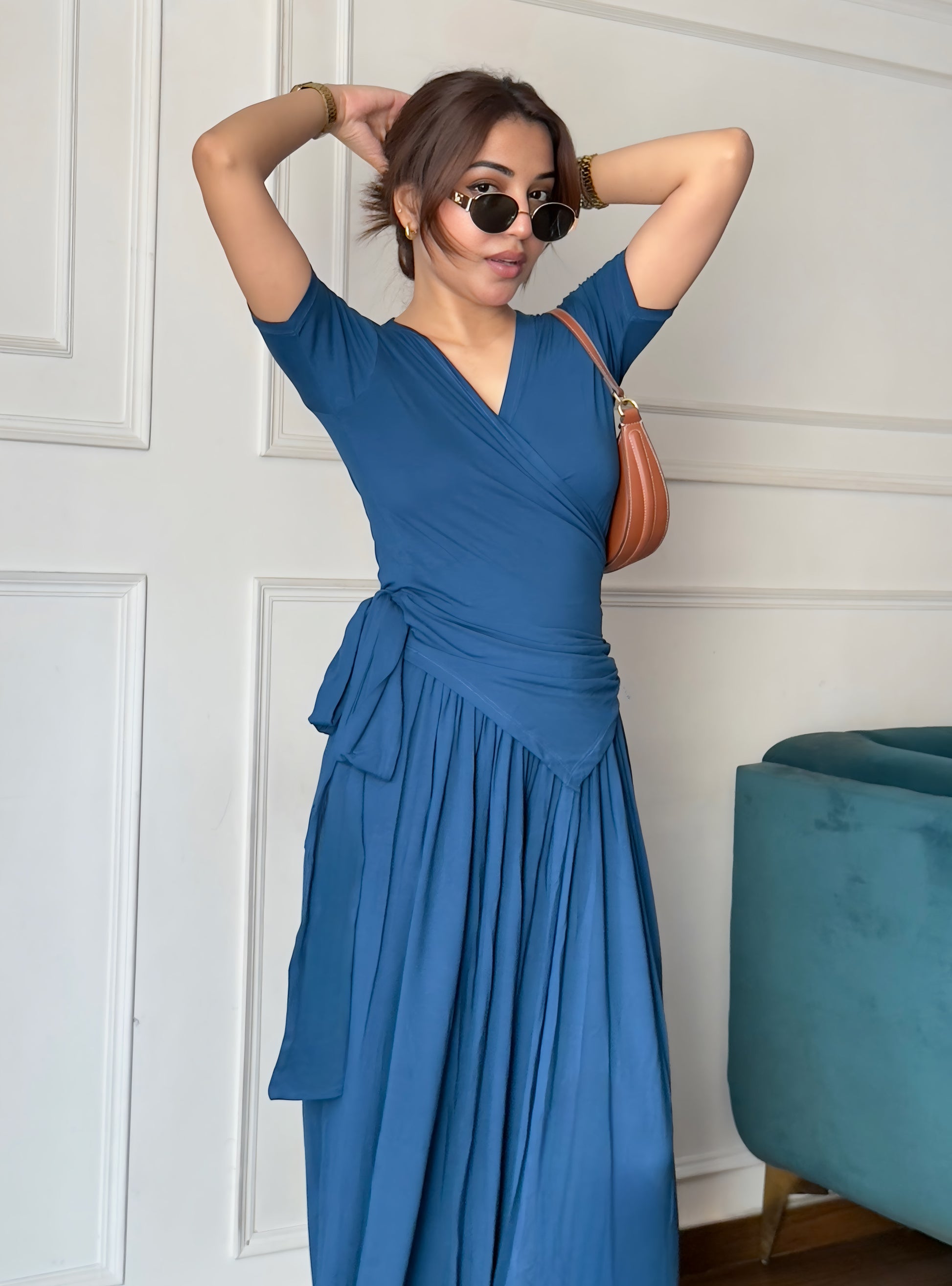 - Top Details: Wrap Around, Half Sleeves, Stretchable, Full Length 26 Inches
