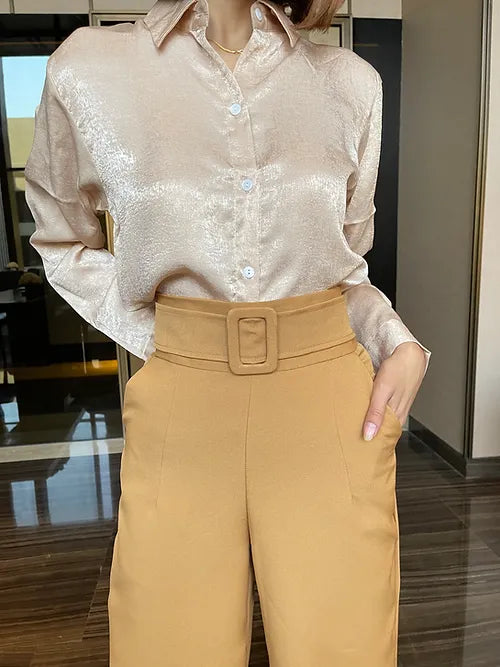 - Details: Front Attached Belt, Back Zipper, High Waist, Comfortable Feel, Pockets