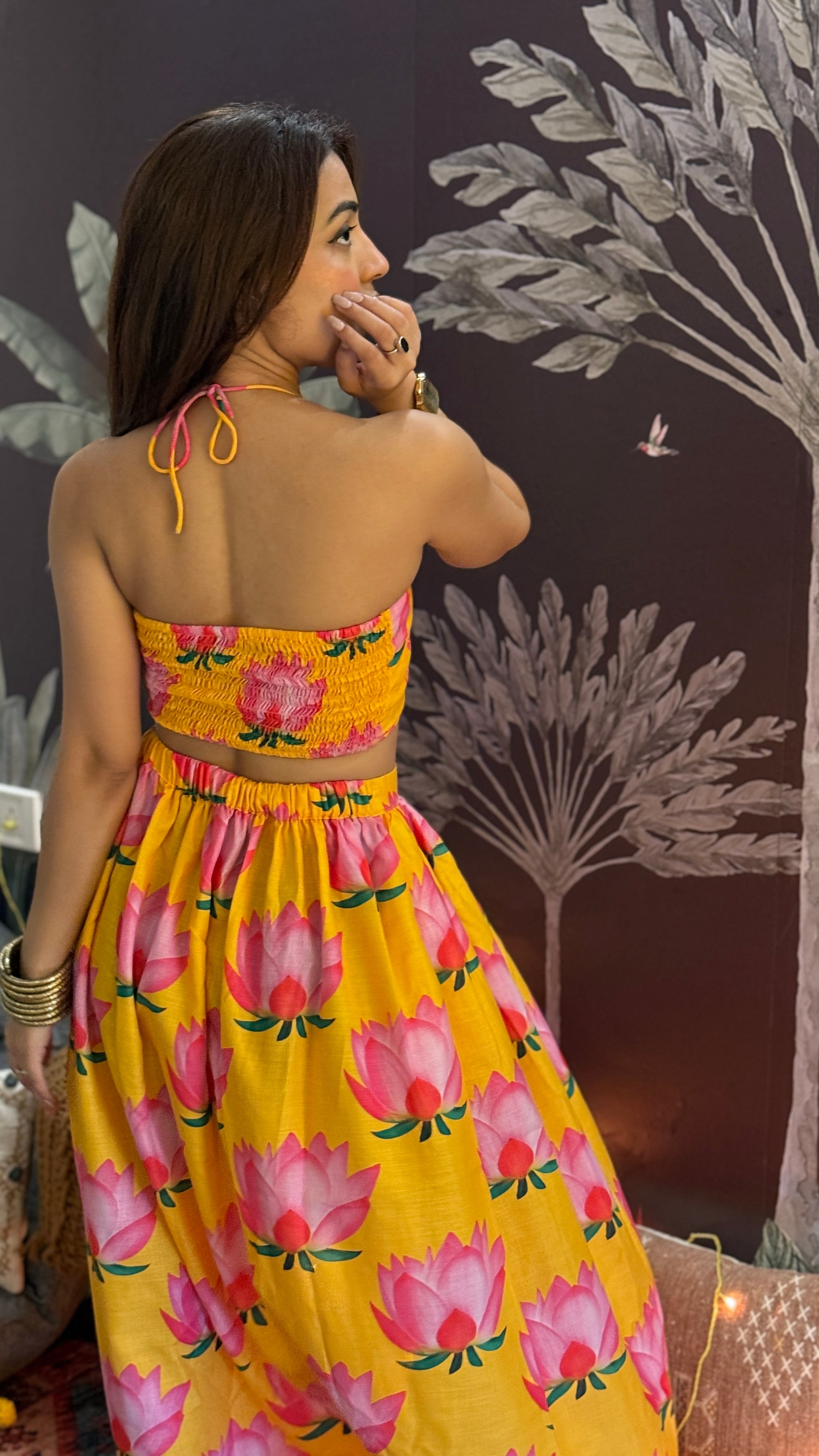 - Top Details: Bralette, Not Padded, Halter Neck Style, Back Smocked